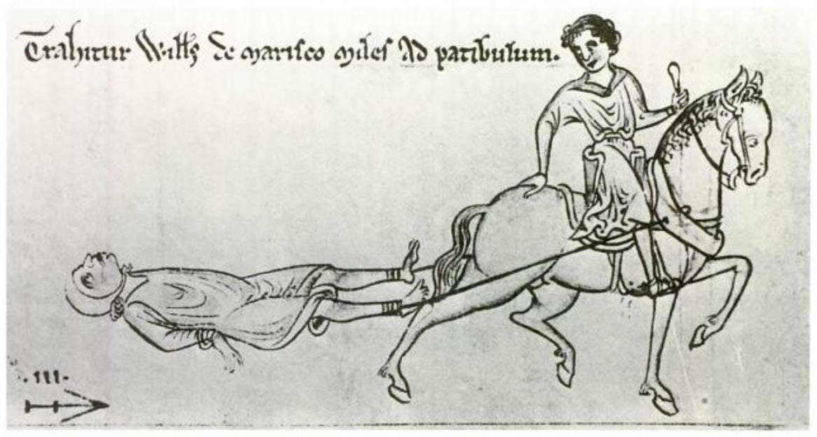 Attached is an illustration of William de Marisco being dragged to execution, from Matthew Paris’s Chronica Majora.